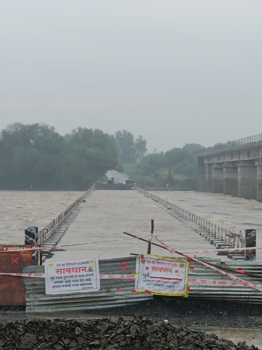 परभणी,दि 27 धानोरा काळे येथील गोदावरी नदीवरील पुलावर पाणी आल्यामुळे ताडकळस ते पालम रस्ता वाहतुकीसाठी बंद करण्यात आला आहे.याआधी देखील तीन दिवस हा रस्ता बंद होता.शनिवारी पहाटे पुन्हा पुलावरुन पणी जात असल्याने रस्ता बंद करण्यात आला आहे.
