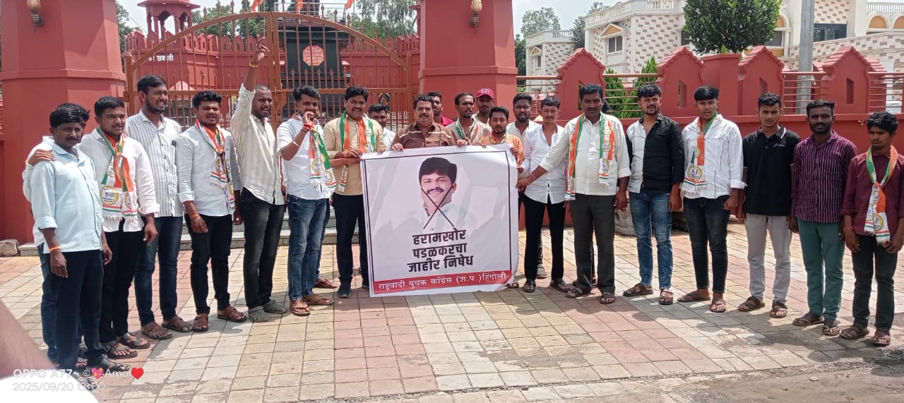 आमदार गोपीचंद पडळकर यांनी राष्ट्रवादी काँग्रेस शरद पवार  पक्षाचे ज्येष्ठ नेते जयंत पाटील यांच्या संदर्भात जे अपशब्द वापरले होते त्याचा जाहीर निषेध करत पडळकर यांच्या पोस्टरला जोडे मारून आंदोलन करून निषेध केला. यावेळी जिल्हाध्यक्ष दिलीप चव्हाण, हिंगोली विधानसभा अध्यक्ष बंडूभाऊ मुटकुळे, युवा जिल्हाध्यक्ष सोनू चव्हाण आडगावकर , तालुका अध्यक्ष गजानन गव्हाने, युवा तालुका अध्यक्ष रमेश जाधव, धीरज काकडे,गजानन चव्हाण ,विशाल चव्हाण, प्रभाकर गोरे, शामराव गुजर, विनायक चव्हाण, अर्जुन चव्हाण, ओमकार हंडगे, धनंजय सावंत, आगंद चव्हाण, पवन चव्हाण, विष्णू चव्हाण, संतोष चव्हाण, करण चव्हाण, प्रसाद चव्हाण, प्रमोद चव्हाण, यांच्यासह मोठ्या संख्येने युवक कार्यकर्ते उपस्थित हो