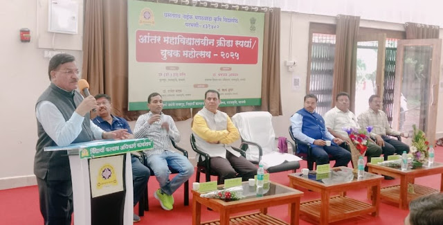 वसंतराव नाईक मराठवाडा कृषि विद्यापीठ, परभणी अंतर्गत विद्यार्थी कल्याण अधिकारी कार्यालयाच्या वतीने आयोजित आंतरमहाविद्यालयीन युवक महोत्सव तसेच क्रीडा महोत्सवाचे भव्य उद्घाटन माननीय कुलगुरू प्रा. (डॉ.) इन्द्र मणि यांच्या अध्यक्षतेखाली दिनांक १८ ऑगस्ट रोजी विद्यापीठाच्या क्रीडा संकुलातील दीक्षांत सभागृहात पार पडले. यावेळी शिक्षण संचालक डॉ. भगवान आसेवार, विद्यार्थी कल्याण अधिकारी डॉ. राजेश कदम यांची प्रमुख उपस्थिती होती. या निमित्ताने विद्यापीठ परिसरात उत्साहाचे आणि सांस्कृतिक उर्जेचे वातावरण निर्माण झाले. उद्घाटन प्रसंगी माननीय …