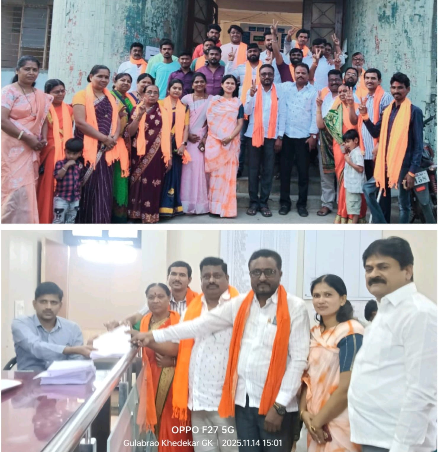 सेलू / प्रतिनिधी – प्रभाग क्रमांक 04 सेलु येथील शिवसेना उद्धव बाळासाहेब ठाकरे शिवसेनेच्या लोकप्रिय अधिकृत उमेदवार मंगलआत्या कथले व किशोर भांडवले यांचा उमेदवारी अर्ज आज शिवसेना जिल्हाप्रमुख श्री रविंद्र बापु धर्मे यांच्या प्रमुख उपस्थितीत भरण्यात आला यावेळी शिवसेना सेलु-जिंतुर विधानसभाप्रमुख तथा जि.प.गटनेते मा.श्री राम (नाना) पाटिल,शिवसेना उपजिल्हाप्रमुख तथा सेलु कृषी उत्पन्न बाजार समितिचे माजी सभापति श्री रंजित तात्या गजमल,युवासेना शहरप्रमुख वैभव वैद्य,गुलाबराव खेडेकर,बाबा भाबट,शक्ति बोराडे,योगेश कथले,शोभा ईक्कर,अमोल गायकवाड,गुड्डुभाई,राकेश सासोडे,मनिष केवारे आदि शिवसेना युवासेनेचे पदाधिकारी व महिला आघाडीच्या पदाधिकारी व शिवसेना कार्यकर्ते मोठ्या प्रमाणात उपस्थित होते.